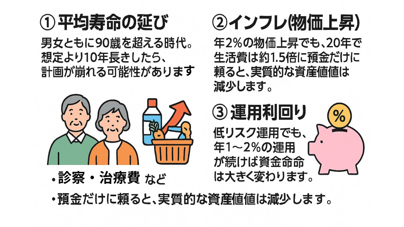男女ともに90歳を超える時代。想定より10年長生きしたら、計画が崩れる可能性があります。