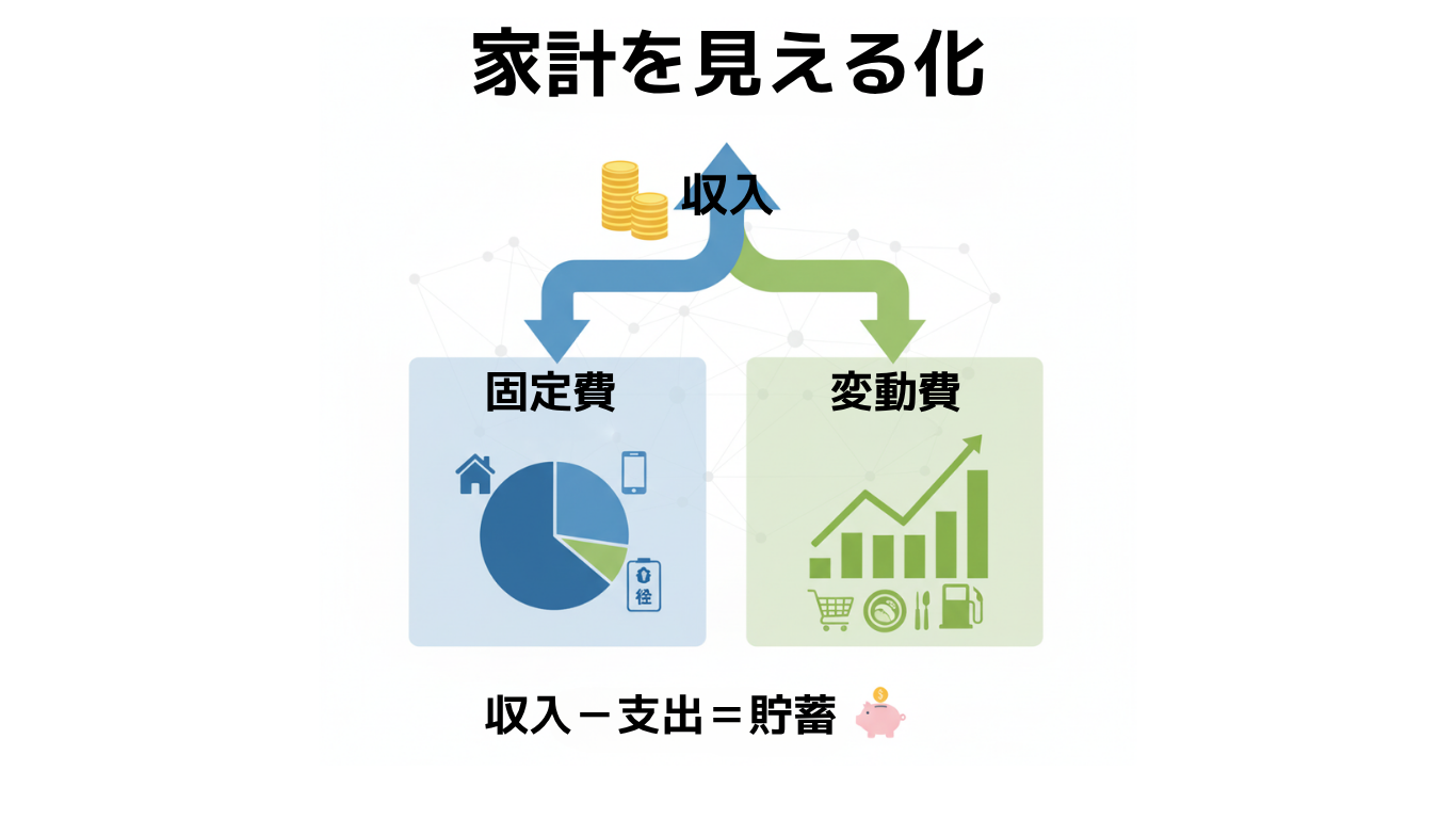 ・固定費: 住居費(家賃・ローン)、通信費(スマホ・ネット)、保険料、サブスクリプション料金など、毎月決まってかかる費用。