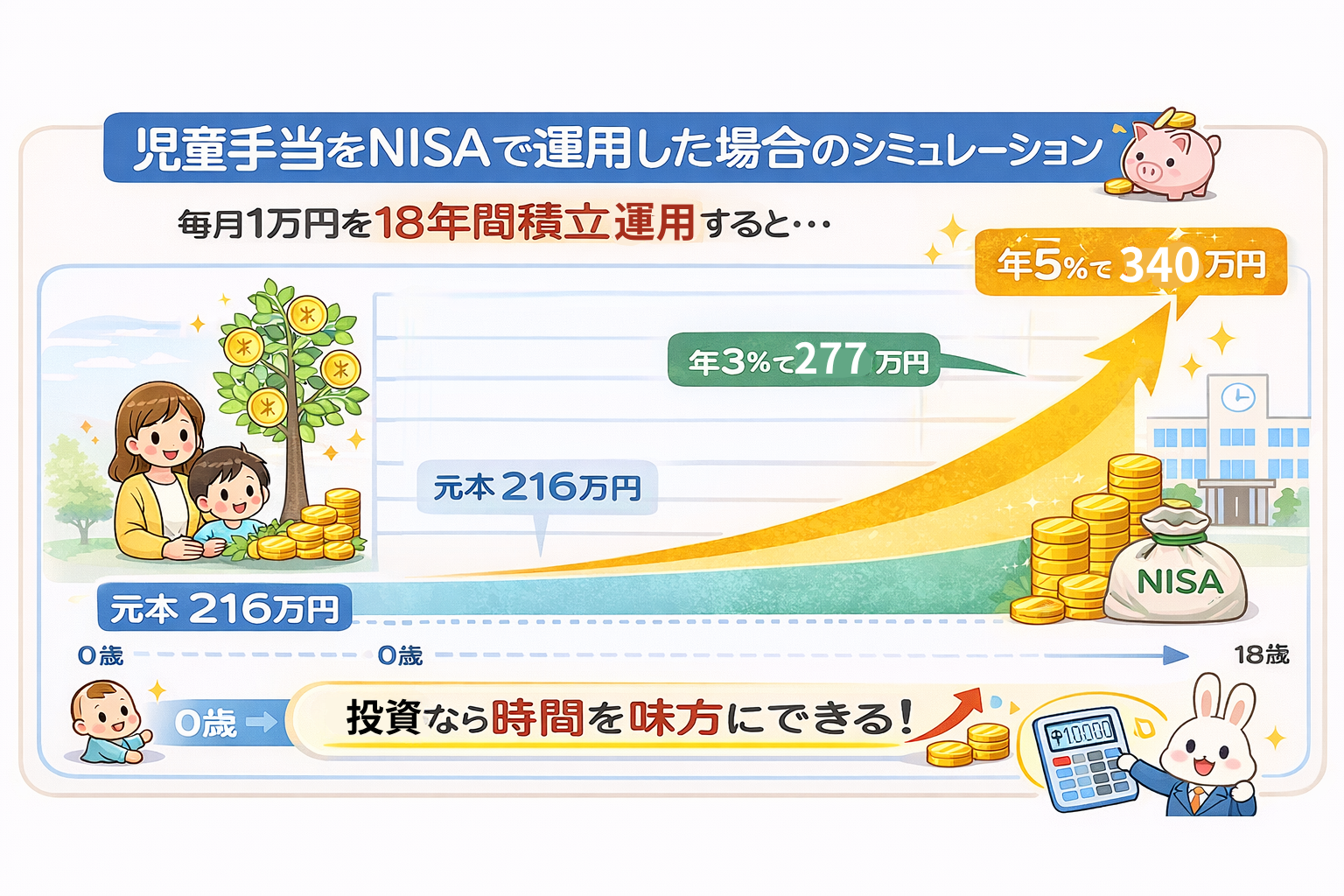 児童手当を運用するかどうかで差が出るのは、時間を味方にできるかどうかです。たとえば毎月1万円を18年間積み立てた場合、元本は216万円です。これを年3%や年5%程度で長期運用できれば、受け取る金額は大きく変わります。
