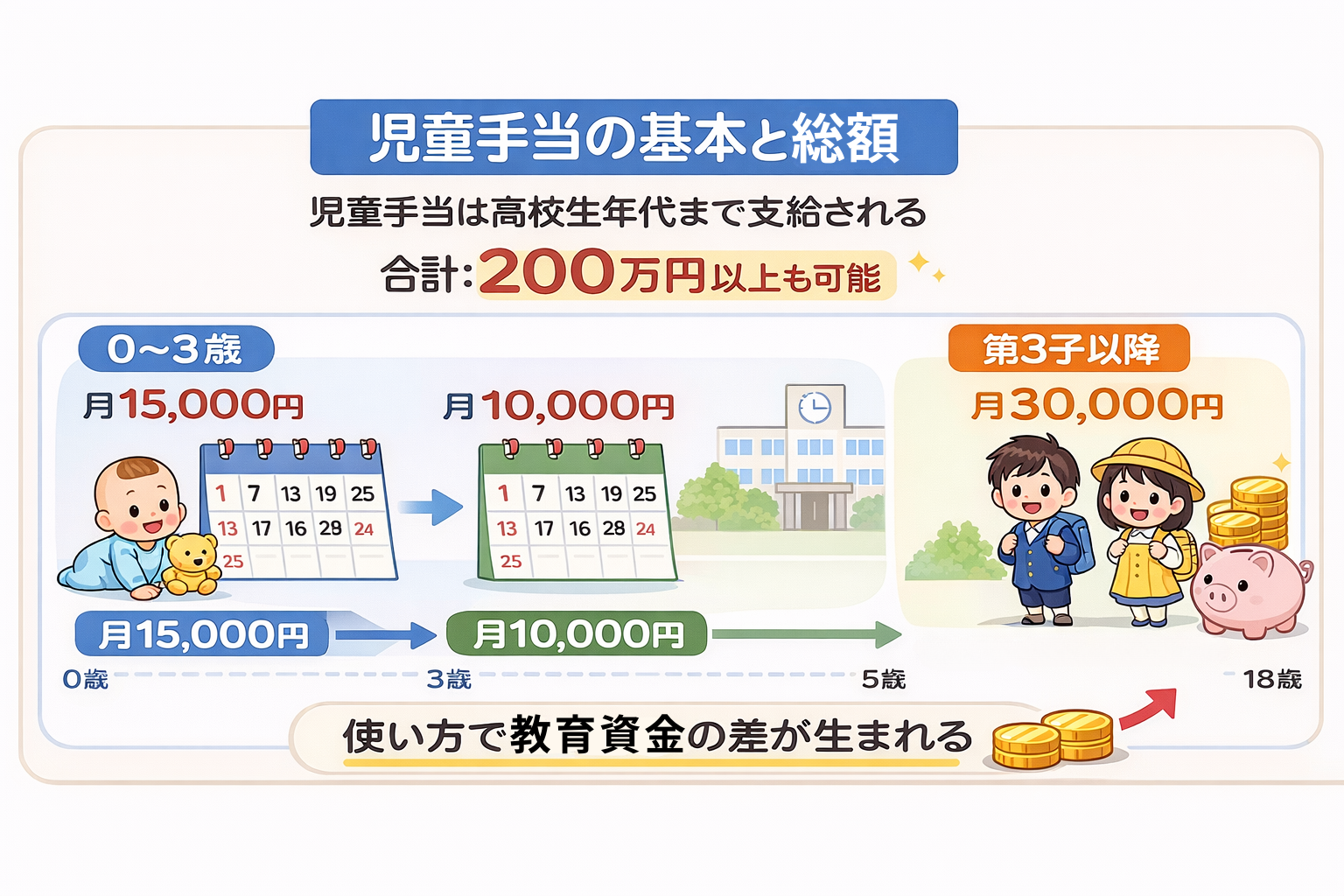 POINT児童手当をそのまま普通預金に入れているご家庭は多いですが、使い方によっては将来の教育資金に大きな差が出ます。